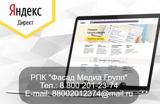 РПК «Фасад Медиа Групп» настроило рекламу нашему заказчику в сети Интернет. Рекламная кампания проводится посредством размещения ссылки на сайт рекламодателя в Яндекс.Директе. Период рекламной кампании составляет 1 мес. Для получения услуг по размещению рекламы в Интернете обращайтесь в наше рекламное агентство. Будем рады сотрудничеству