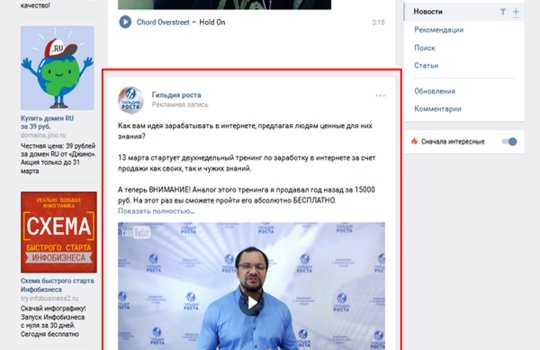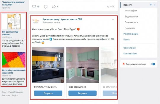 Выделяют следующие виды рекламных объявлений в ВКонтакте: