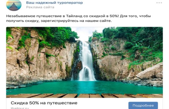 Известно, что самый ценный ресурс – это время. И в рекламной сфере данный постулат актуален, как ни в какой другой. К примеру, для того, чтоб запустить рекламу на телевидении, необходимо изготовить рекламный ролик, проверить его на соответствие законам, отправить ролик в эфир телеканала, подобрать для него подходящее и свободное время и только после этого, выйти в эфир. Для того, чтобы повесить баннер на рекламный щит, необходимо изготовить дизайн-макет будущей рекламы, согласовать этот макет с юристами, распечатать баннер, повесить этот баннер на конструкцию. Как видим, для того, чтобы разместить рекламу и обратить внимание вашего потенциального покупателя или заказчика на товар или услугу, порой необходимо потратить много времени. Возникает вопрос, а какая реклама может быть размещена в короткие сроки? Благодаря какой рекламе можно быстро выйти на рынок и найти покупателя? Ответ прост: такой рекламой является реклама в ВКонтакте.