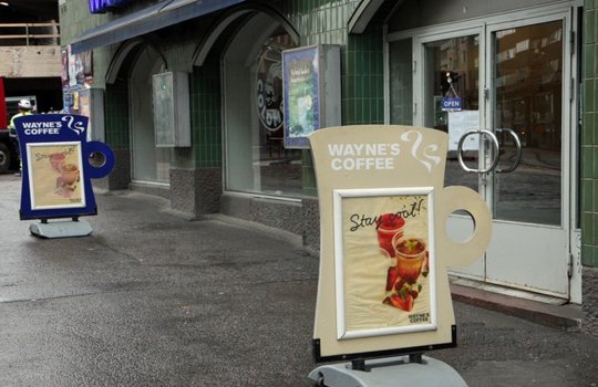Пример рекламы в напольной конструкции в кафе: