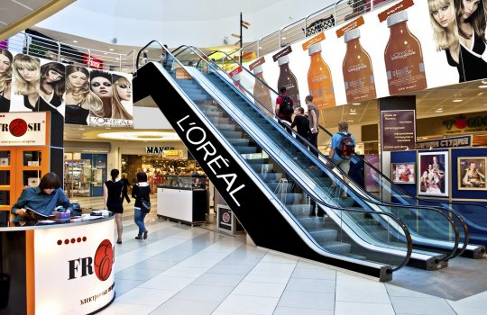 Пример рекламы в виде брендирования эскалатора в торговых центрах: